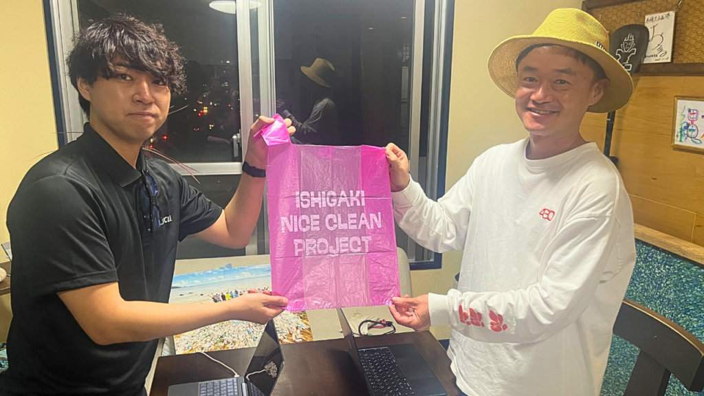 田中: 石垣島を訪れる観光客の方に、専用の「ピンクの袋」を持ってビーチに行ってもらい、遊びながらゴミを拾って持ち帰ってもらうプロジェクトです。拾ったゴミを指定場所に届けると、感謝状と記念ステッカーをお渡ししています。